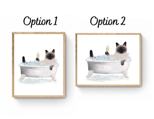 Himalayan Cat Bathing Print, Himalayan Cat In Bathtub, Pet Memorial, Bathroom Cat Painting, Cat Relaxing In Bath Print, Cat Lover Gift