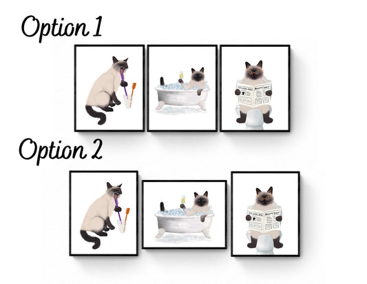Himalayan Cat Bathroom Art Set of 3, Bathroom Wall Decor, Cute Himalayan Cat In Bath Art, Cat On Toilet Print, Cat Lover Gift, Cat Spa Day