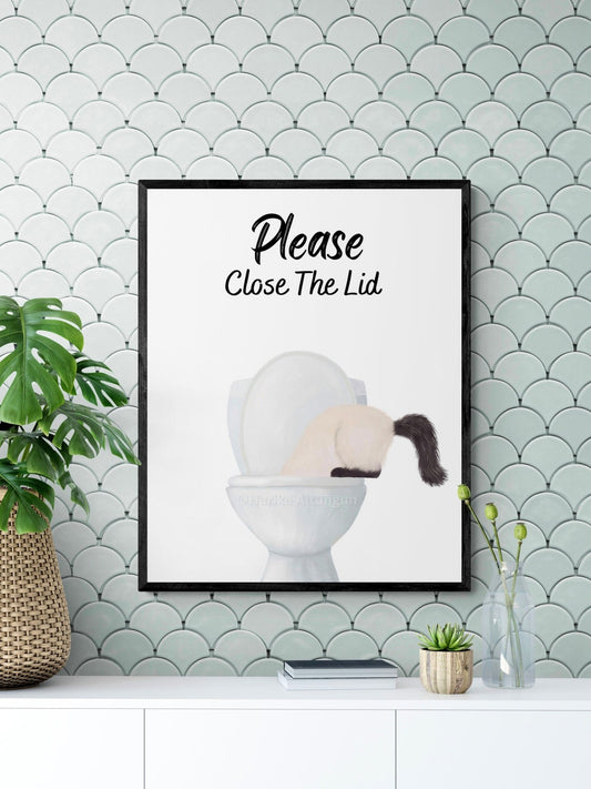 Himalayan Cat Drinking Water From Toilet Sign, Fat Fluffy Cat Print, Bathroom Decor, Cat Painting, Kitty Licking Water From Toilet Art