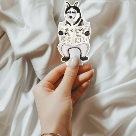 Husky Dog Reading Newspaper Bathroom Ceramic Tile