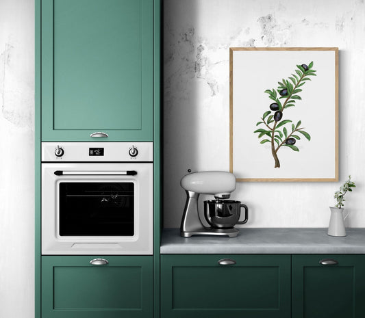 Olive Branch Art Print, Still Life Wall Art, Olive Leaf Decor, Dining Room Decor, Botanical Painting, Plant Illustration, Farmhouse Decor