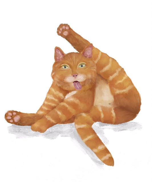 Orange Tabby Cat Licking Himself Print, Ginger Cat Painting, Cat Lover Art, Cat Lady Gift, Living Room Wall Decor