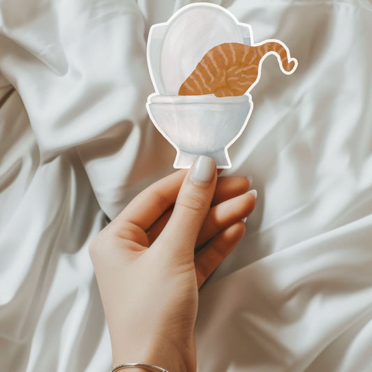 Orange Tabby Cat On Toilet Print - Ginger Cat with Tablet on Toilet