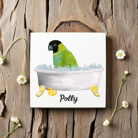 Parrot in Bathtub Ceramic Tile – Handcrafted Whimsical Bird Art Decor
