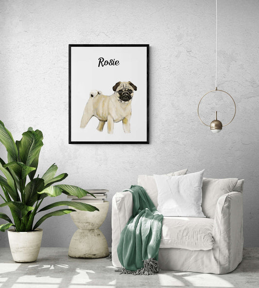 Personalized Pug Print, Pug Painting, Pug Portrait, Doggy artwork,Cute Pug Print, Living Room Wall Art, Bedroom Wall Print, Puppy Home Decor