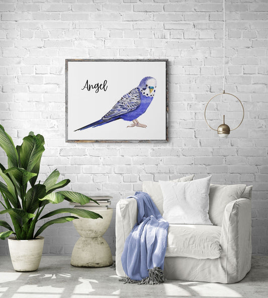 Personalized Purple Parakeet, Custom Budgie Art, Purple Budgerigar, Tropical Bird, Bird Lover Gift, Animal Wall Artwork, Bird Illustration