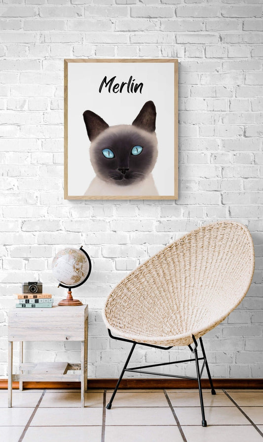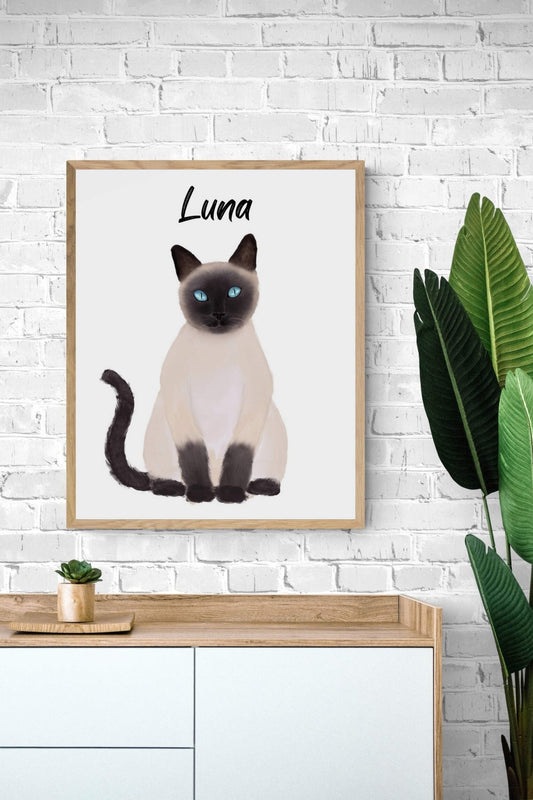 Personalized Siamese Cat Portrait, Customized Cat Name Print, Pet Painting, Siamese Cat With Blue Eyes, Animal Memorial, Cat Lover Gift