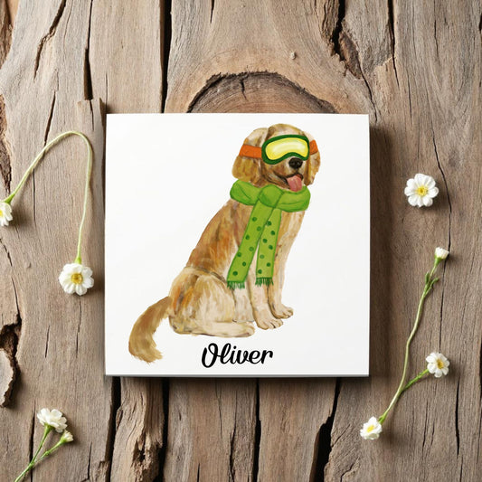Playful Winter Dog Illustration – Golden Pup in Green Scarf