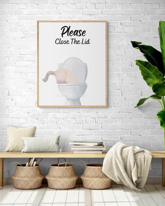 Ragdoll Cat Drinking Water From Toilet Art Sign, Fat Ragdoll Cat Print, Bathroom Decor, Cat Painting, Kitty Licking Water From Toilet Art