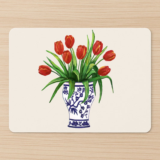 Red Tulips in Vase Vinyl Mousepad