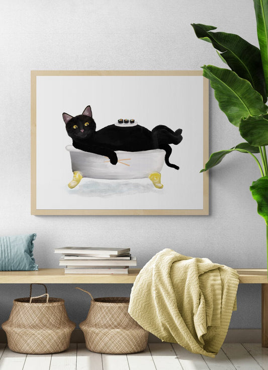 Black Cat Sushi Relaxation – Fun Bathtub Art Print