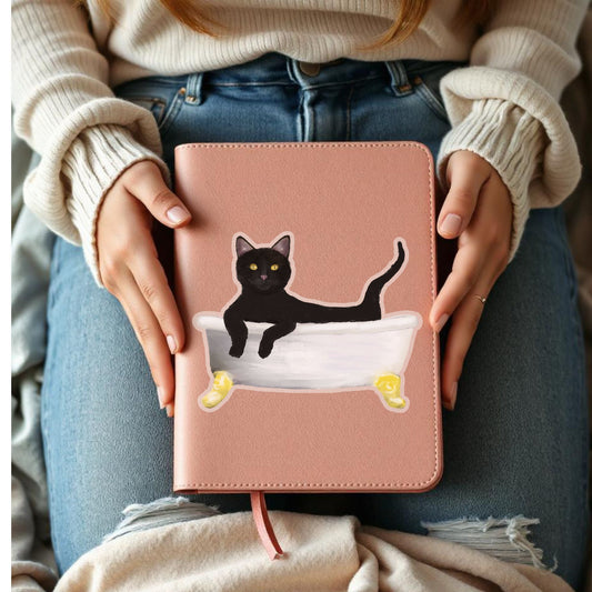 Black Cat Relaxing in Bathtub – Cute Bathroom Art Print