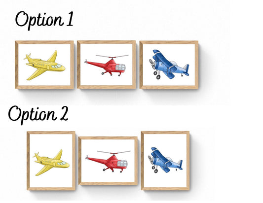 Set of 3 Airplane Wall Art, Kids Transportation Print, Vintage Plane Painting, Playroom and Nursery Art, Kids Adventure Art, Boys Room Gift