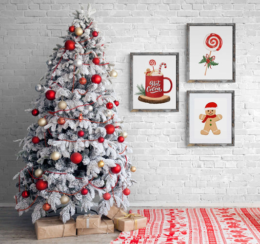 Set of 3 Christmas Prints, Hot Cocoa Painting, Winter Decor, Living Room Home Art, Holiday Wall Art, Chocolate Illustration, Cozy Wall Gift