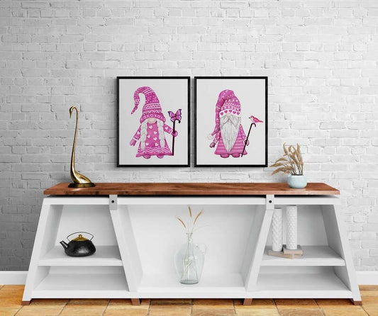 Set of 2 Pink Gnome Wall Art Prints, Valentines Day Artwork, Love Wall Art, Valentines Decor, I Love You Art, Holiday Wall Hanging