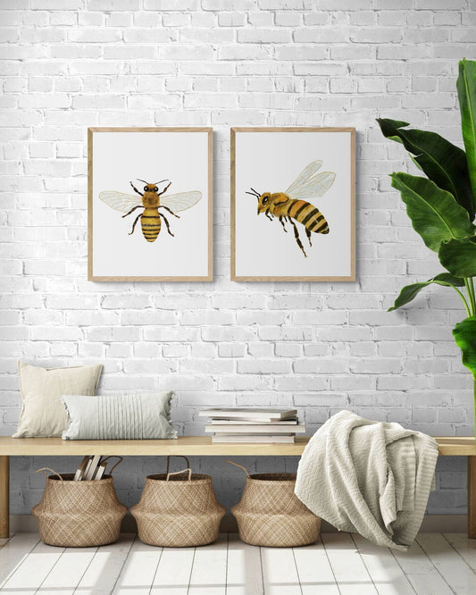 Set of 2 Wild Honey Bee Prints, Honeybee Portrait, Living Room Art, Home Decor, Wildlife Artwork, Animal Lover Gift, Kitchen Wall Painting