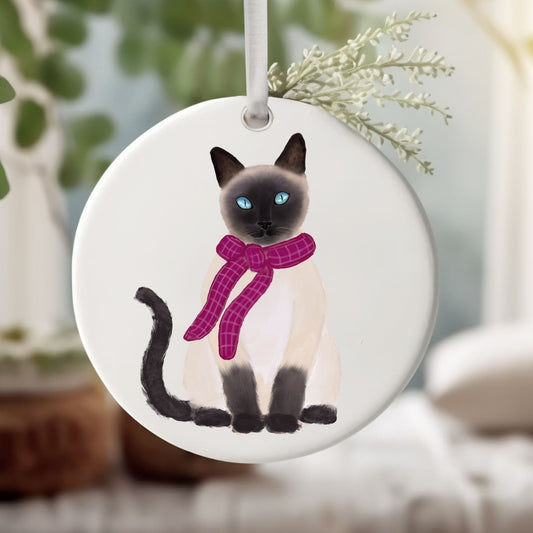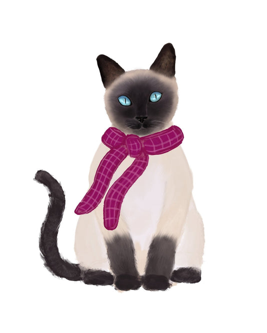 Siamese Cat with Scarf Print, Pets in Fall Painting, Fall Decor, Living Room Home Wall Art, Holiday Art, Cat Illustration, Animal Lover Gift
