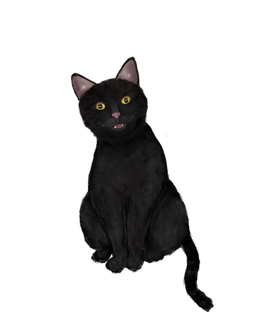 Sitting Black Cat Wall Art, Cute Cat Art Print, Black Cat Painting, Black Kitty Portrait, Cat Memorial, Cat Lover Gift, Cat Lady Gift