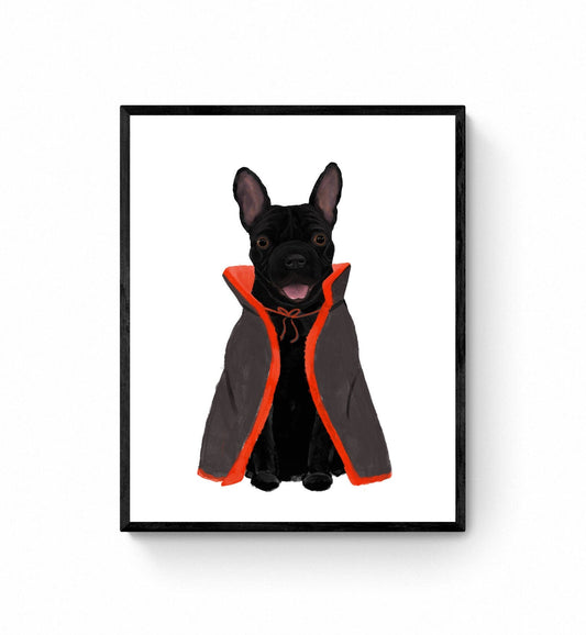Black French Bulldog with Costume Print, Halloween Dog Painting, Spooky Dog Artwork, Holiday Wall Art, Fall Autumn Wall Print
