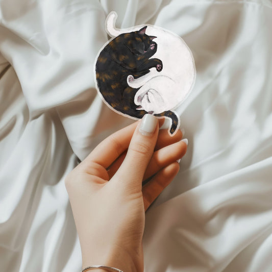 Sleeping Tortoiseshell And White Cats Vinyl Sticker