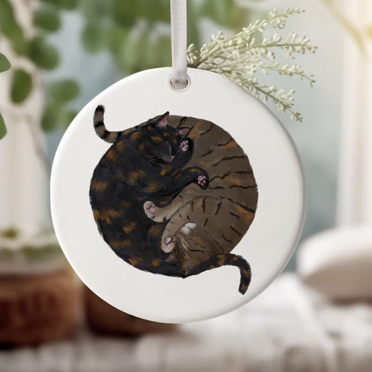 Sleeping Tortoiseshell Cats Ceramic Ornament