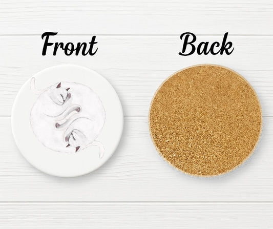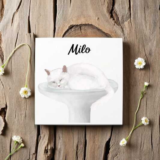 Sleeping White Cat on Cozy Cushion Ceramic Tile