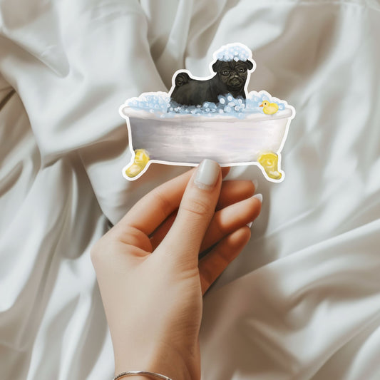 Black Pug Bubble Bath Art Print – Cute Dog Wall Art