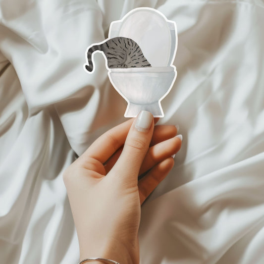 Tabby Cat on Toilet Ceramic Tile – Handcrafted Feline Humor Decor