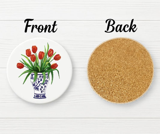 Tulip Bouquet in Delft Blue Vase Ceramic Coaster