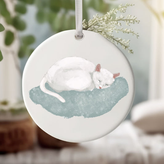 White Cat Spa Day Art Print – Relaxing Cat Lover Wall Decor