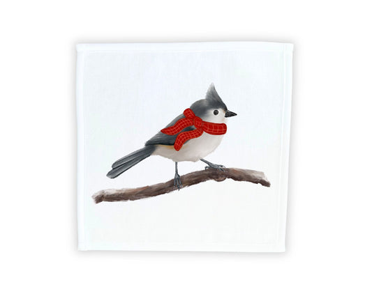 Winter Bird Washcloth | "Cozy Plaid Perch"