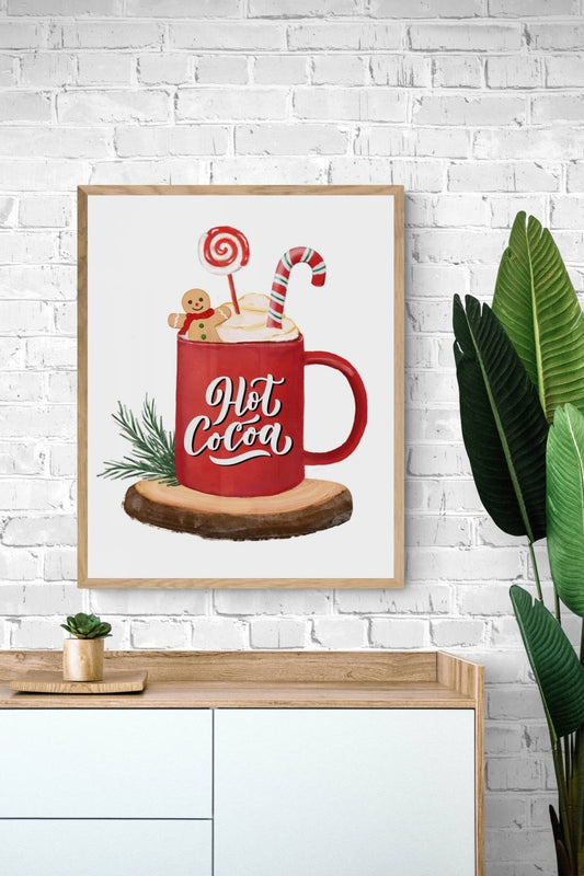 Winter Hot Cocoa Print, Christmas Painting, Winter Decor, Living Room Home Art, Holiday Wall Art, Chocolate Illustration, Cozy Wall Gift