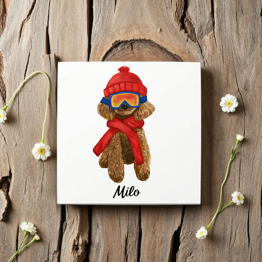 Winter-Ready Poodle with Beanie, Scarf, and Ski Goggles