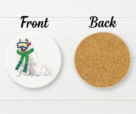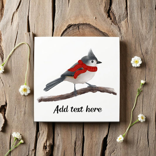 Winter Tufted Titmouse with Red Scarf Ceramic Coaster