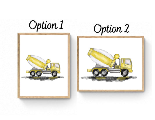Yellow Cement Truck Print, Cement Truck Painting, Construction Nursery Art, Vehicles Print, Kids Wall Art, Boys Room Gift