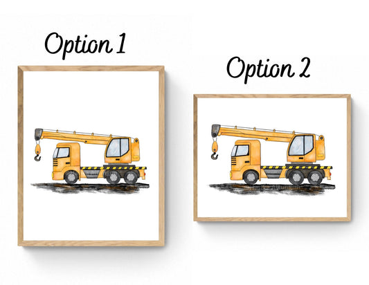 Crane Wall Art, Construction Wall Art, Original Painting, Boys Nursery Art, Construction Vehicle Poster, Nursery Gift, Crane Tractor Drawing