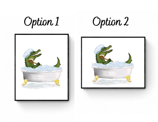 Crocodile In Tub Print, Bathing Alligator Print, Boys Bathroom Art, Funny Florida Bathroom Painting, Kids Bathroom Art, Crocodile Lover Gift