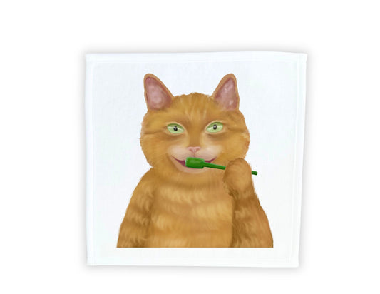 Ginger Cat Brushing Teeth – Fun and Unique Cat Art Print