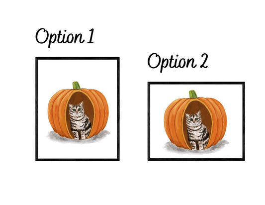 Gray Tabby Cat in Pumpkin Print, Halloween Cat Painting, Gray Cat Hiding in Pumpkin Portrait, Holiday Wall Art, Tabby Cat With Big Eyes