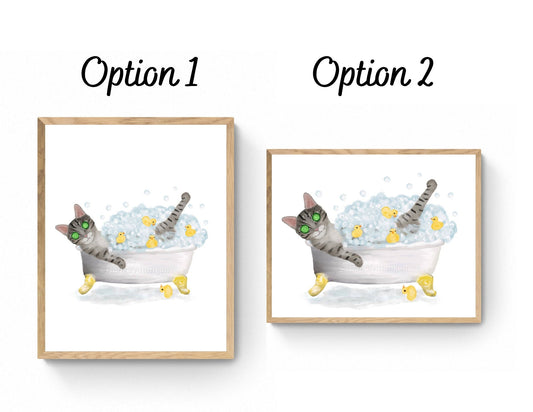 Gray Tabby Cat Bathing Print, Funny Bubble Bath Time, Bathroom Cat Painting, Cat Relaxing In Bath Print, Cat Lover Gift, Ct Mom Dad Gift