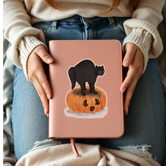 Halloween Black Cat on Pumpkin Ceramic Coaster