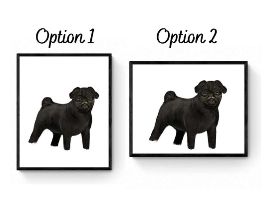 Black Pug Print, Pug Painting, Pug Portrait, Doggy artwork, Cute Pug Print, Living Room Wall Art, Bedroom Wall Print, Puppy Home Decor
