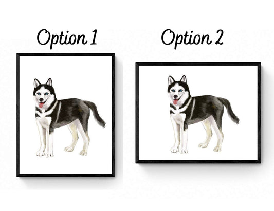 Siberian Husky Print, Husky Portrait, Doggy Artwork, Black and White Dog Painting, Living Room Art, Bedroom Wall Print, Puppy Home Decor