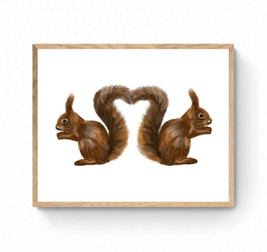 Squirrel Couple Print, Squirrel Portrait, Animal Art, Living Room Wall Art, Home Decor, Wildlife Illustration, Animal Lover Gift