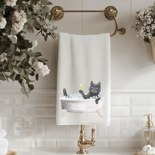 Black Cat in Bathtub Bathroom Towel