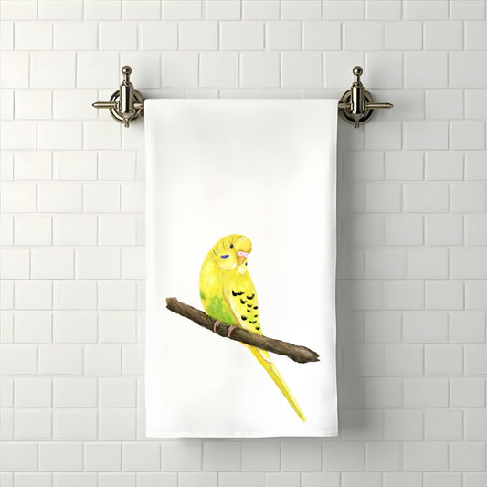 Yellow Budgie Bird Bathroom Towel