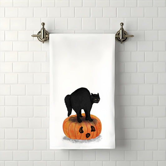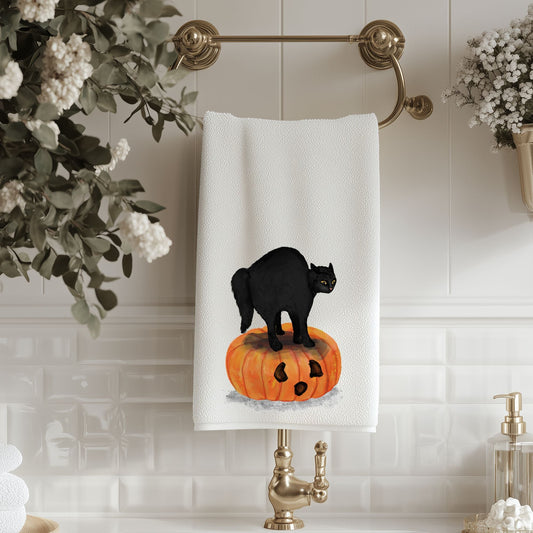 Halloween Black Cat on Pumpkin Bathroom Towel