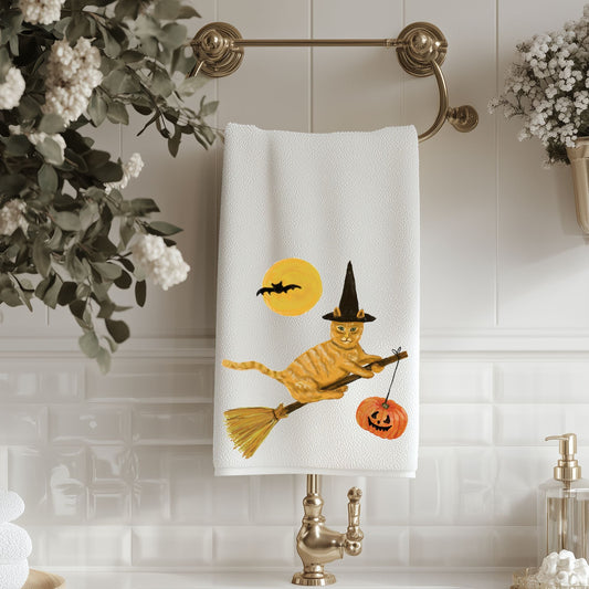 Halloween Tuxedo Witch Cat Bathroom Towel