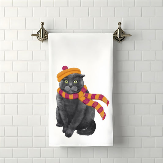 Winter Cat Bathroom Towel
