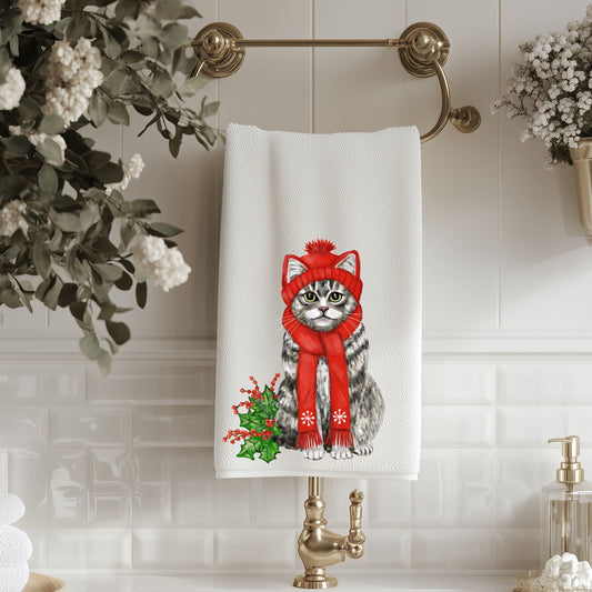 Christmas Tabby Cat Bathroom Towel